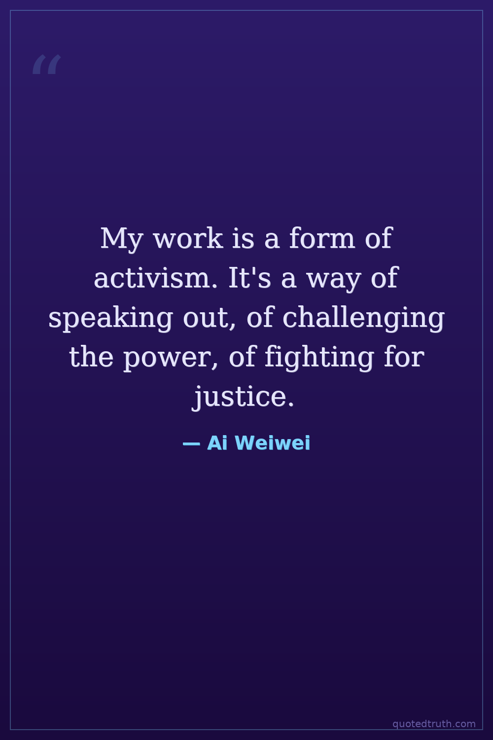 My work is a form of activism. It's a way of speaking out, of challenging the power, of fighting for justice.