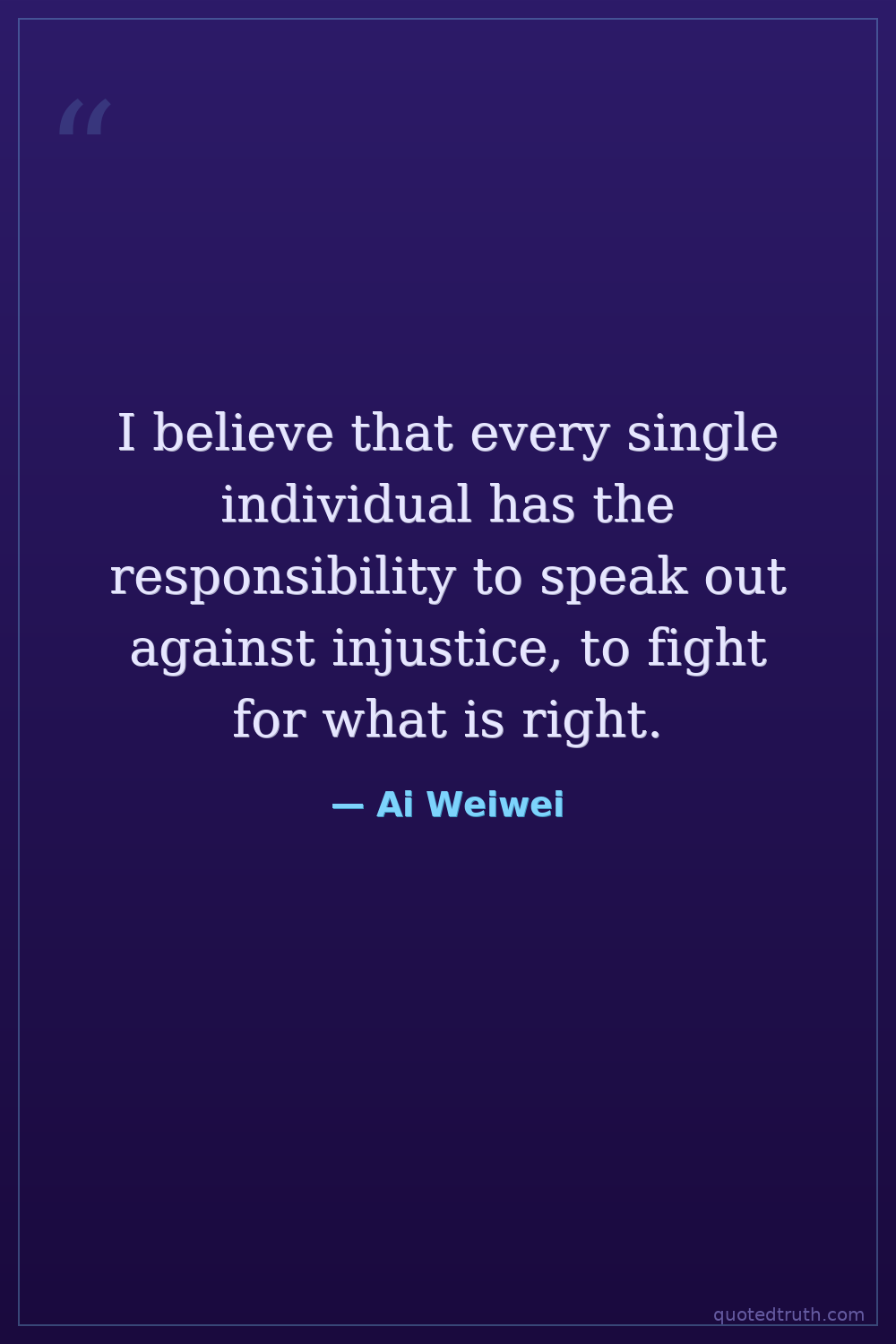 I believe that every single individual has the responsibility to speak out against injustice, to fight for what is right.