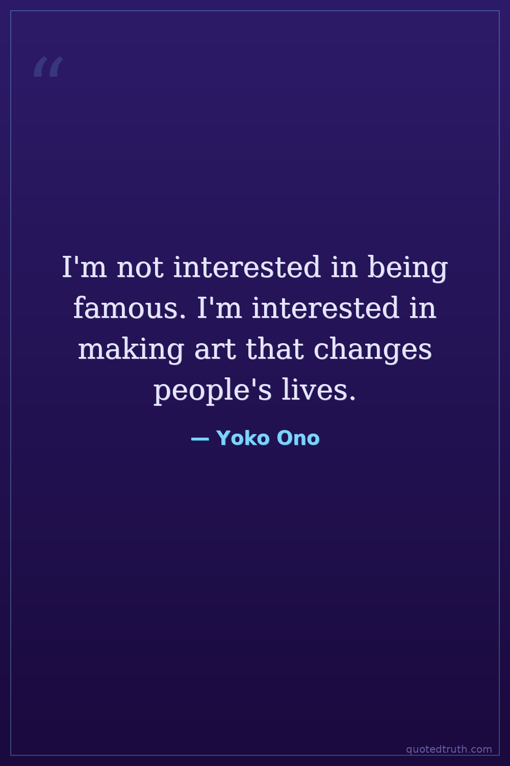 I'm not interested in being famous. I'm interested in making art that changes people's lives.