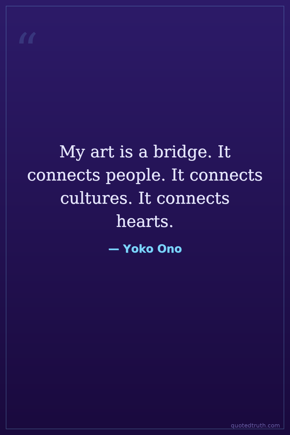 My art is a bridge. It connects people. It connects cultures. It connects hearts.