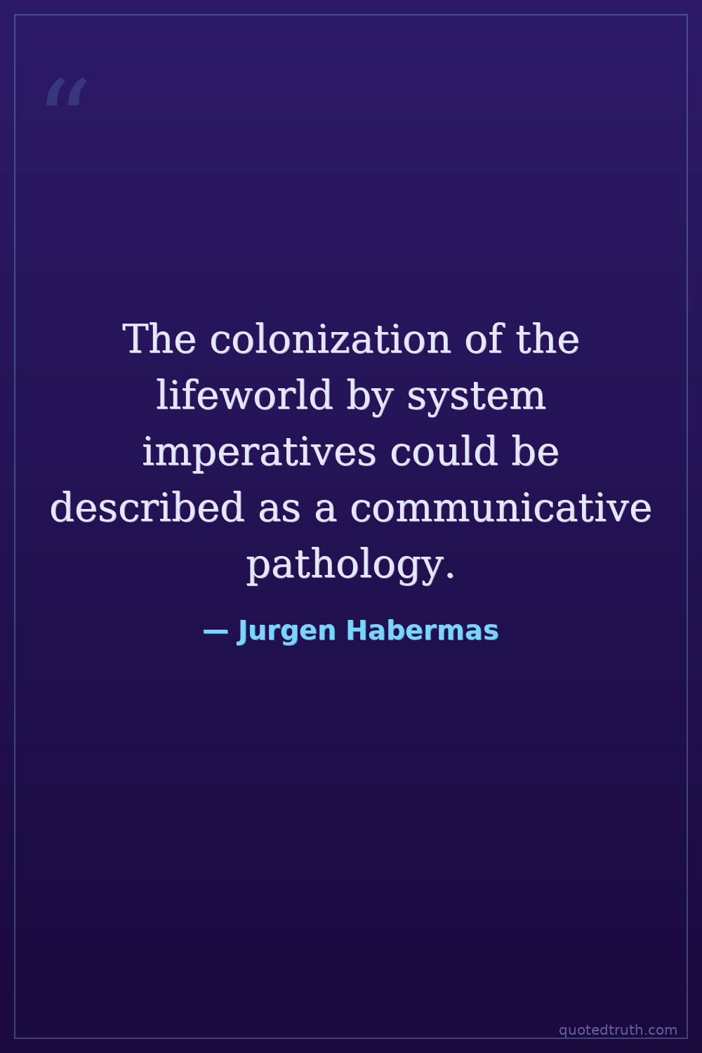 The colonization of the lifeworld by system imperatives could be described as a communicative pathology.