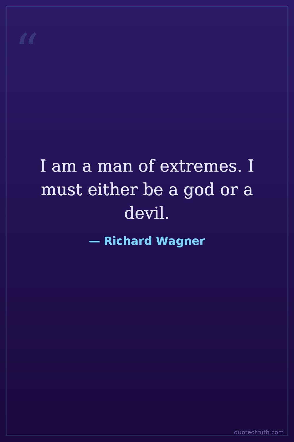 I am a man of extremes. I must either be a god or a devil.
