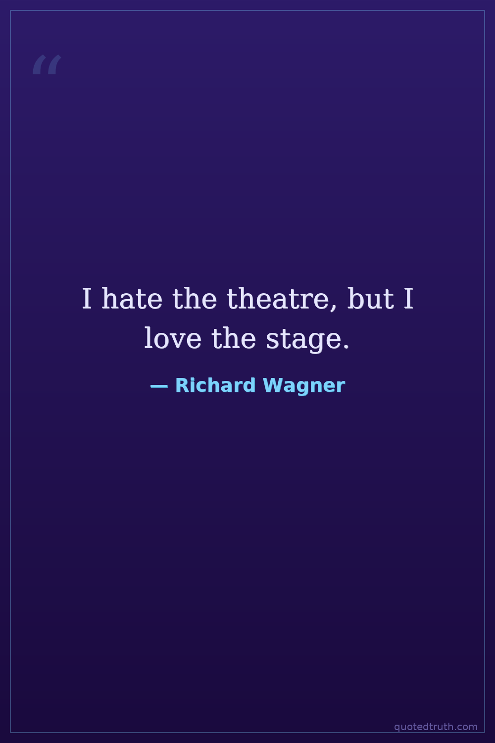 A paradoxical statement reflecting his disdain for the commercial and social aspects of contemporary theatre, while revering its artistic potential.