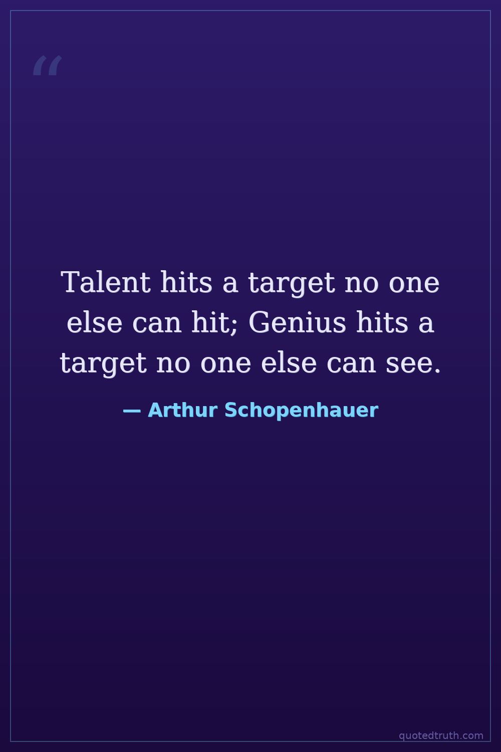 Talent hits a target no one else can hit; Genius hits a target no one else can see.
