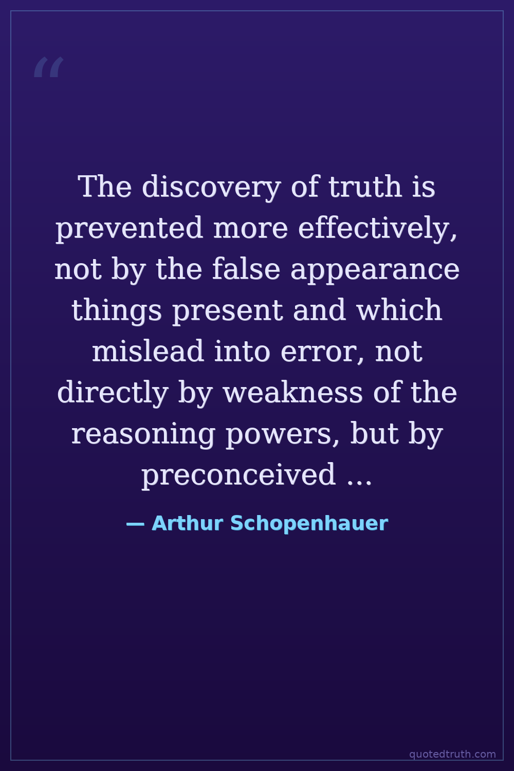The discovery of truth is prevented more effectively, not by the false appearance things present and which mislead into error, not directly by weakness of the reasoning powers, but by preconceived opinion, by prejudice.