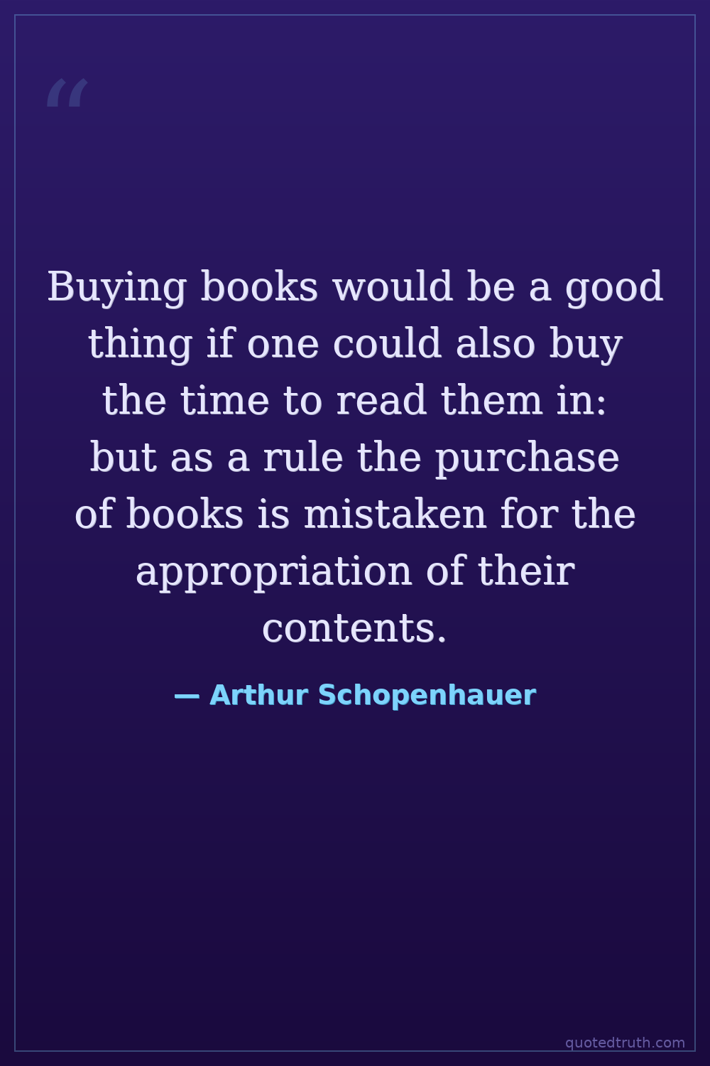 Buying books would be a good thing if one could also buy the time to read them in: but as a rule the purchase of books is mistaken for the appropriation of their contents.