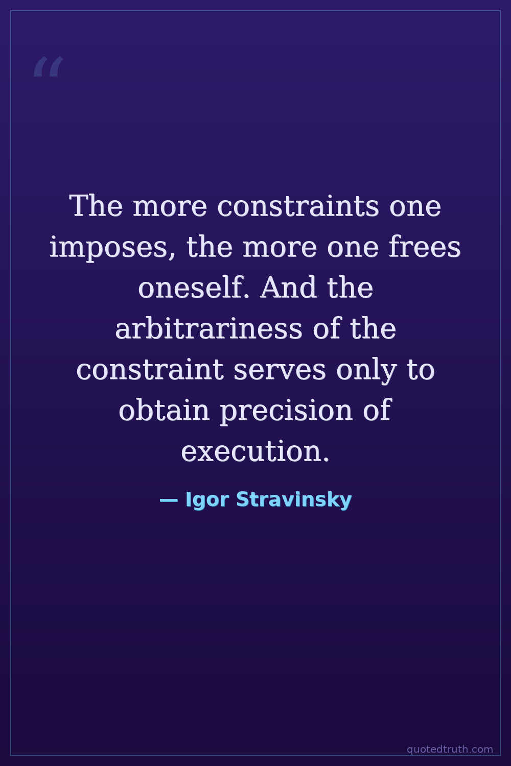 The more constraints one imposes, the more one frees oneself. And the arbitrariness of the constraint serves only to obtain precision of execution.