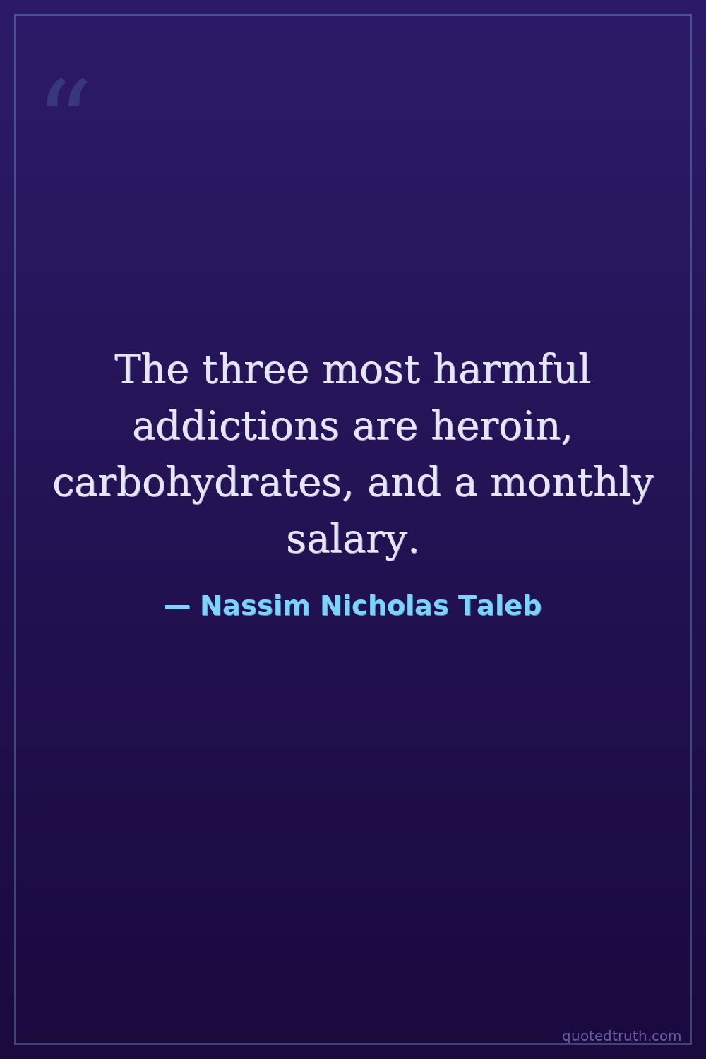 The three most harmful addictions are heroin, carbohydrates, and a monthly salary.
