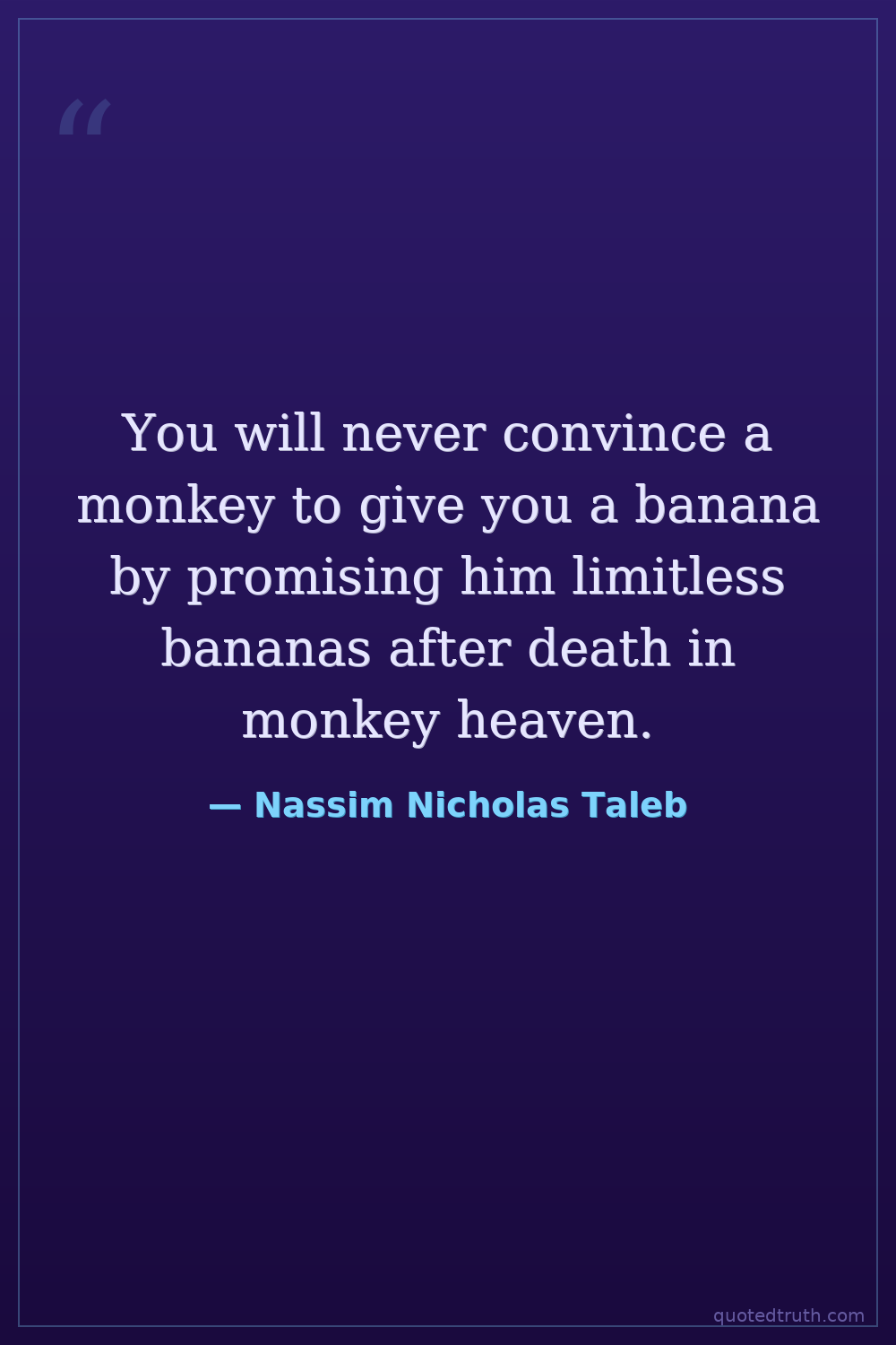 You will never convince a monkey to give you a banana by promising him limitless bananas after death in monkey heaven.