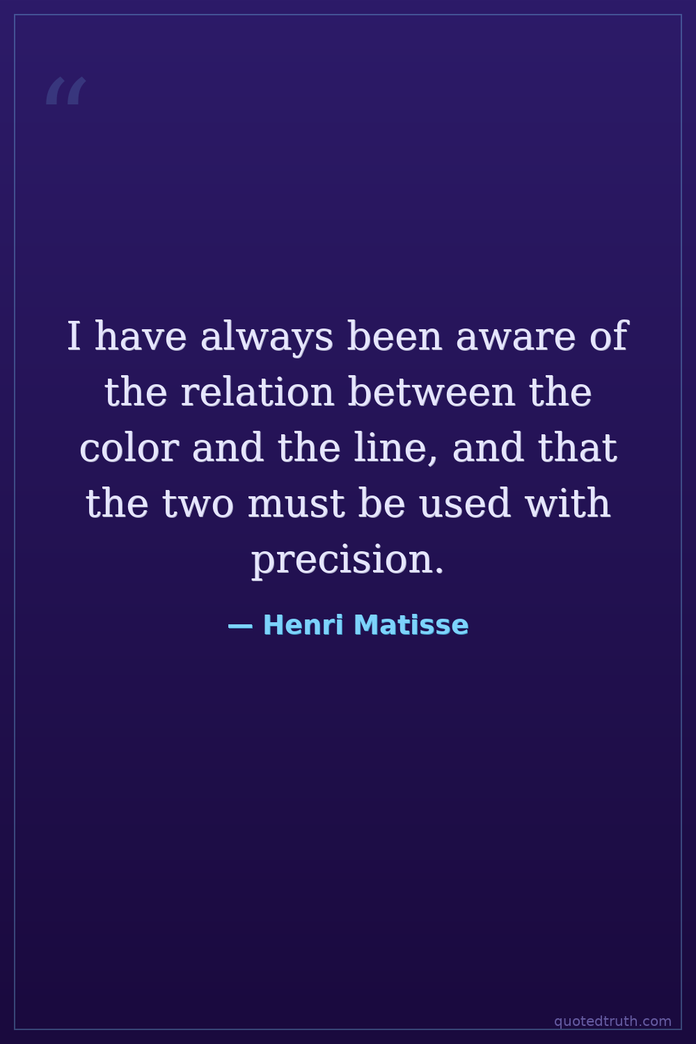 I have always been aware of the relation between the color and the line, and that the two must be used with precision.