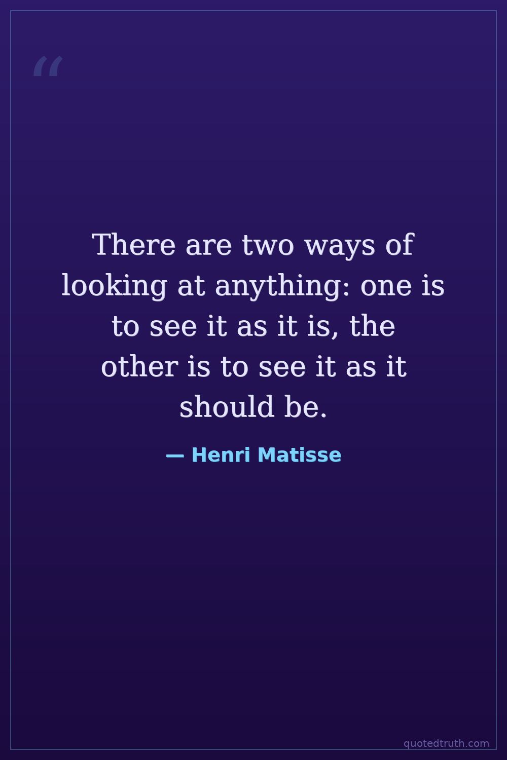 There are two ways of looking at anything: one is to see it as it is, the other is to see it as it should be.