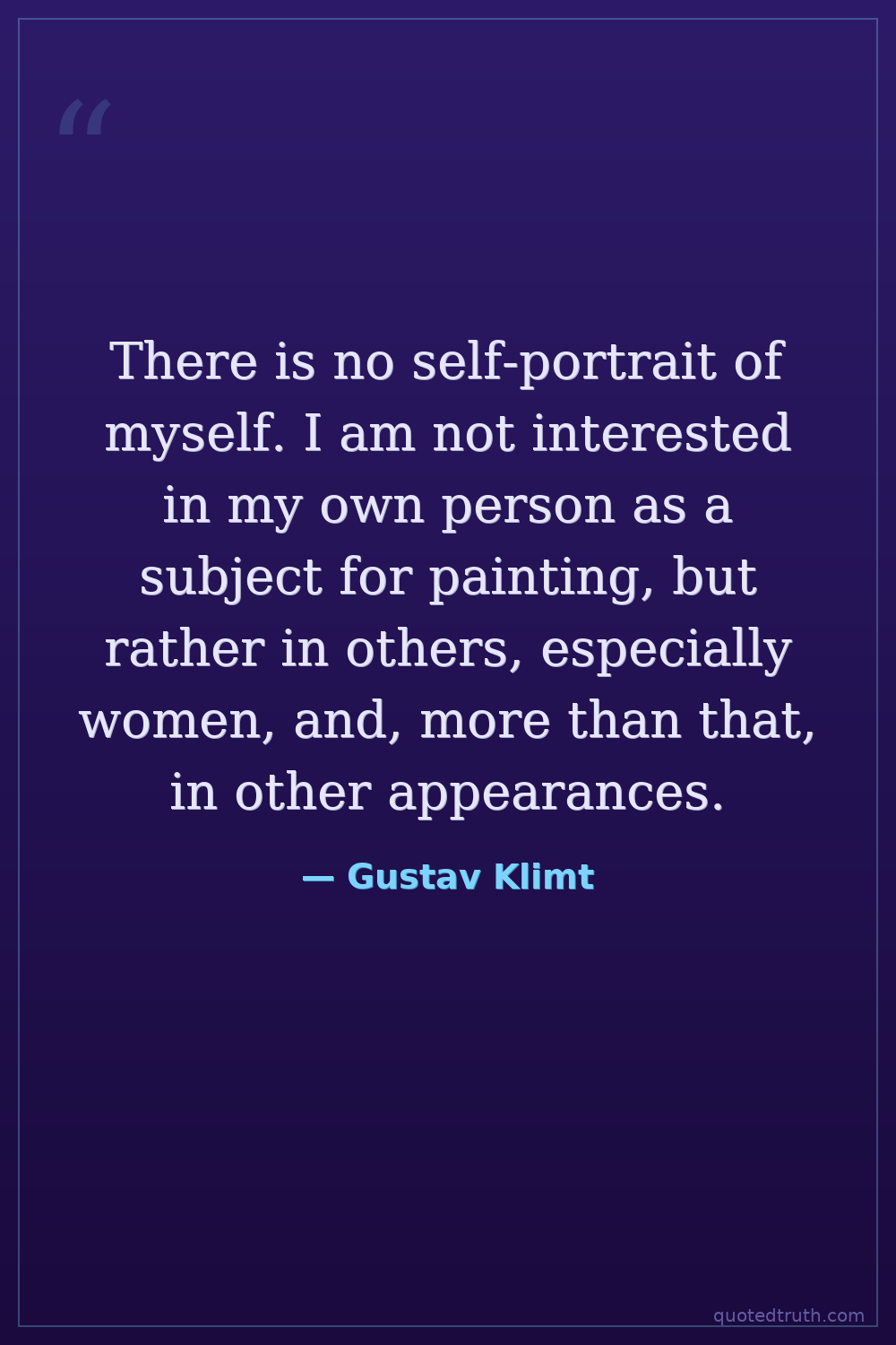 There is no self-portrait of myself. I am not interested in my own person as a subject for painting, but rather in others, especially women, and, more than that, in other appearances.