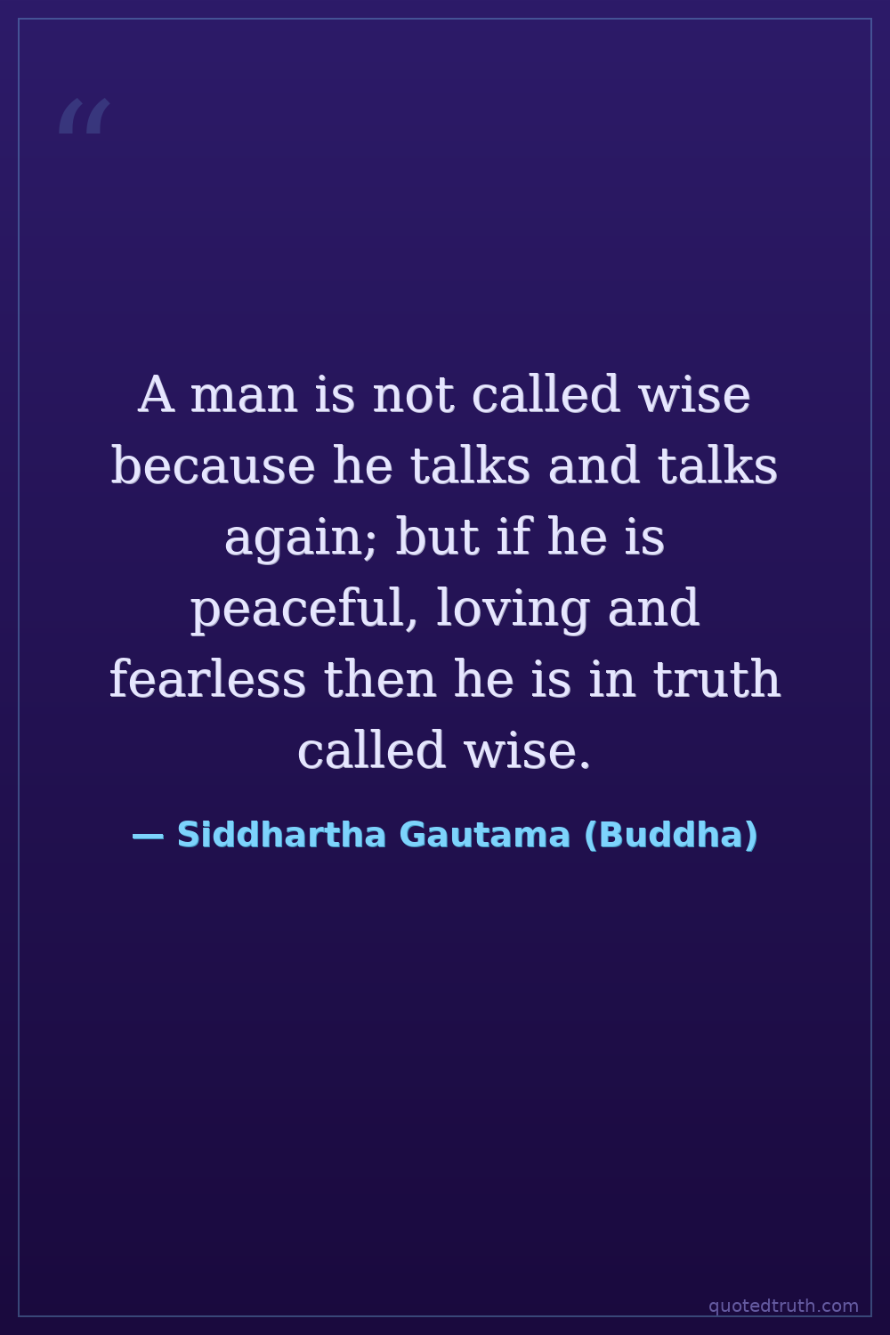 A man is not called wise because he talks and talks again; but if he is peaceful, loving and fearless then he is in truth called wise.