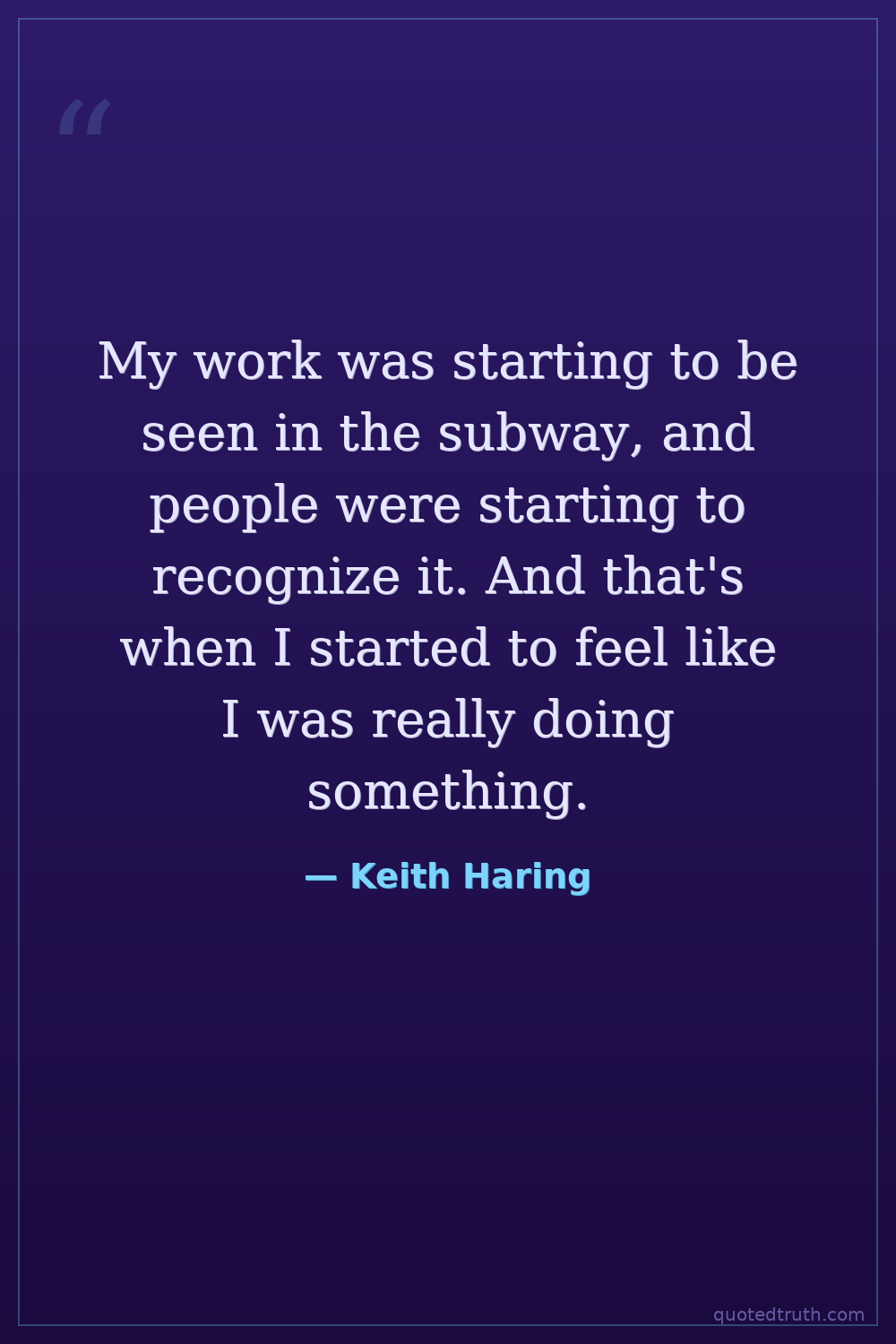 My work was starting to be seen in the subway, and people were starting to recognize it. And that's when I started to feel like I was really doing something.
