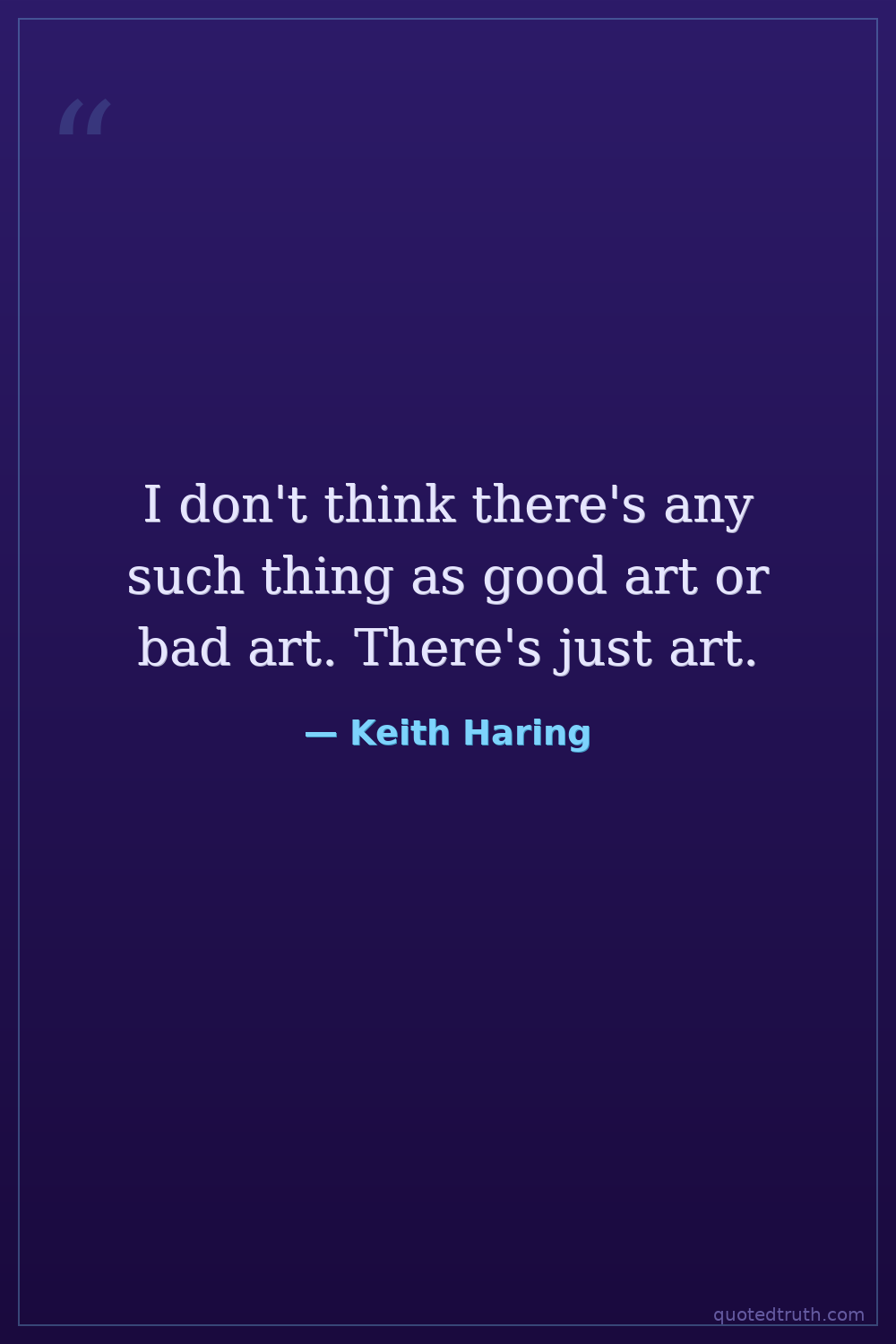 I don't think there's any such thing as good art or bad art. There's just art.