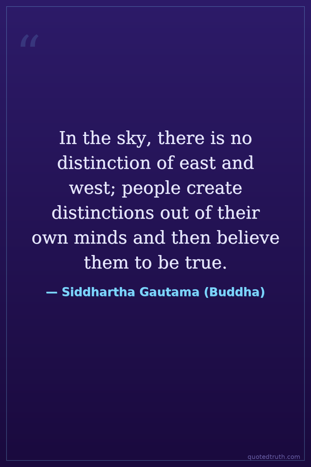 In the sky, there is no distinction of east and west; people create distinctions out of their own minds and then believe them to be true.