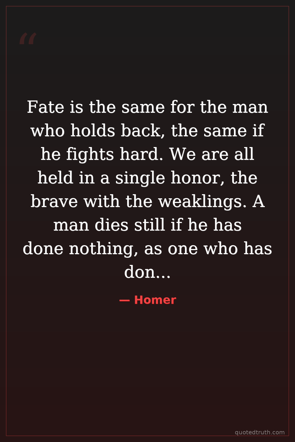 Fate is the same for the man who holds back, the same if he fights hard. We are all held in a single honor, the brave with the weaklings. A man dies still if he has done nothing, as one who has done much.