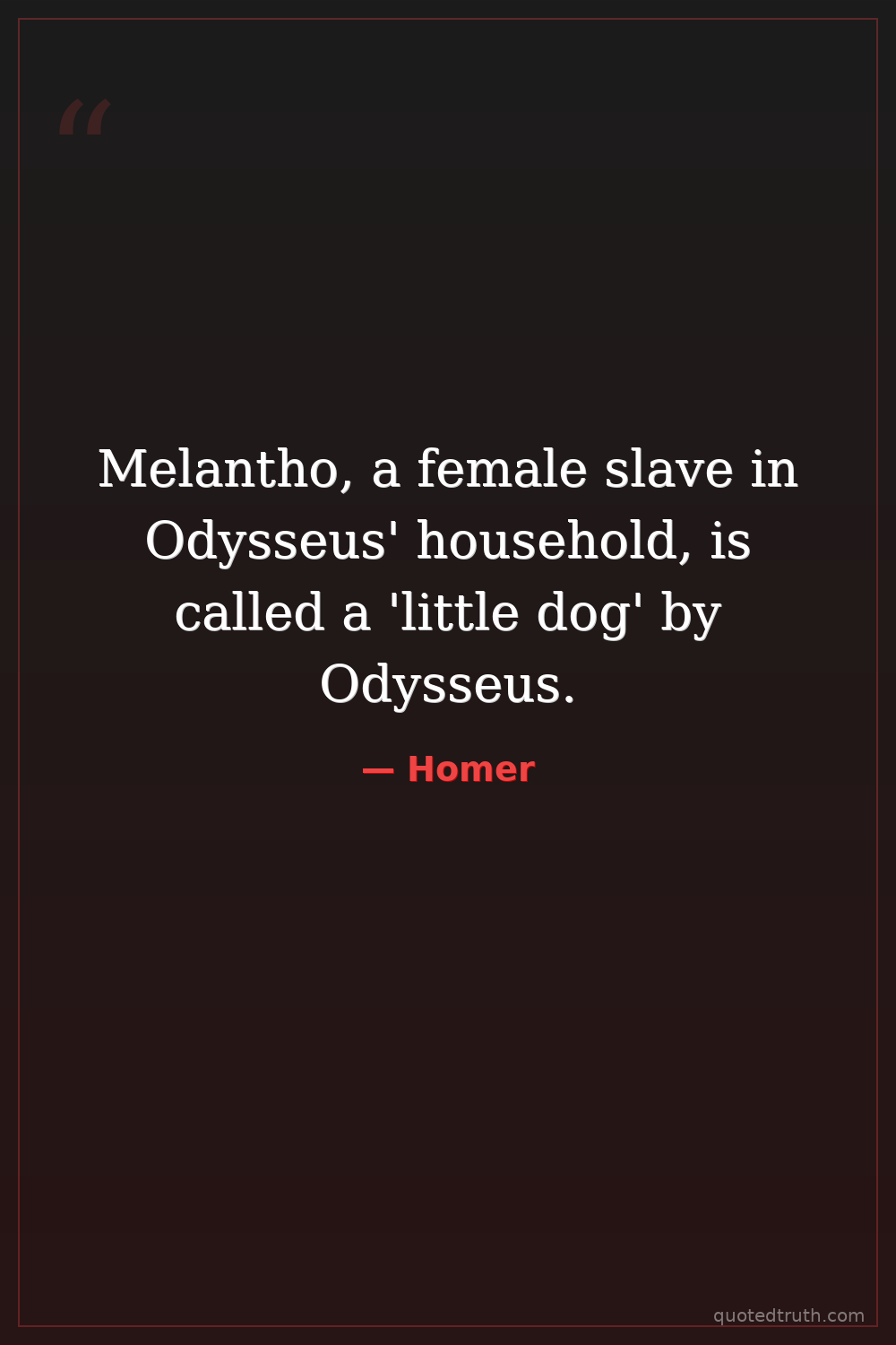 Melantho, a female slave in Odysseus' household, is called a 'little dog' by Odysseus.