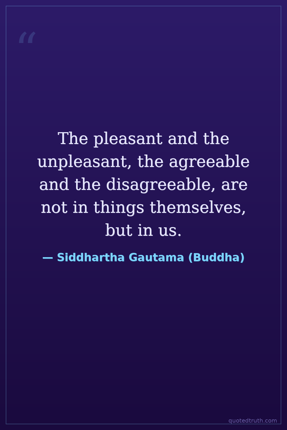 The pleasant and the unpleasant, the agreeable and the disagreeable, are not in things themselves, but in us.