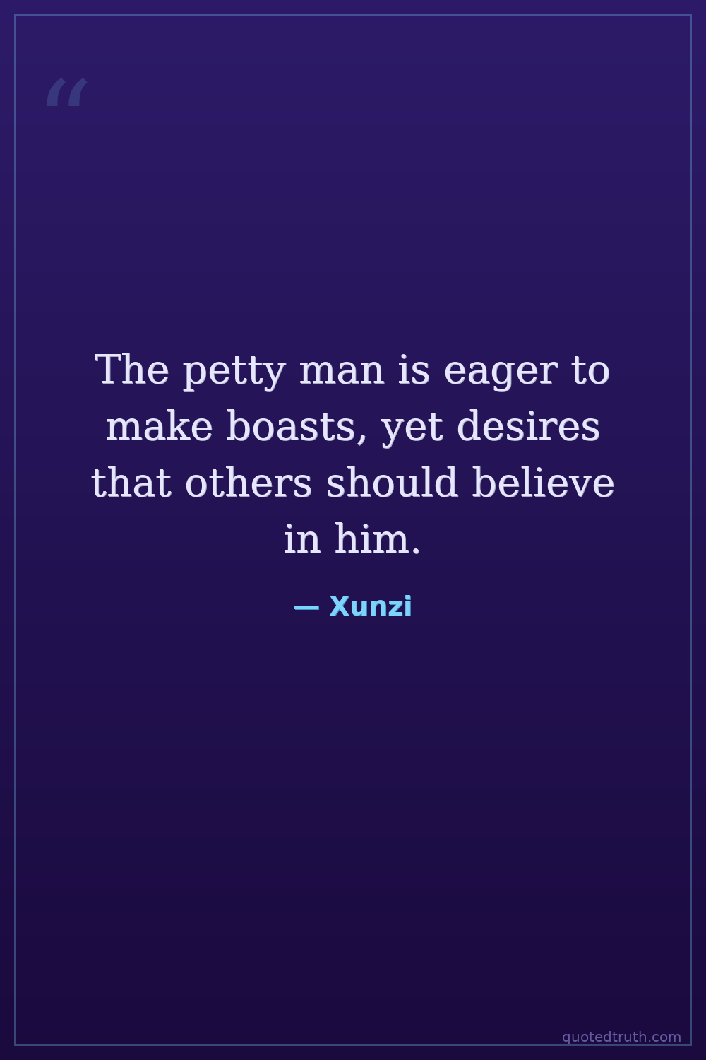 The petty man is eager to make boasts, yet desires that others should believe in him.