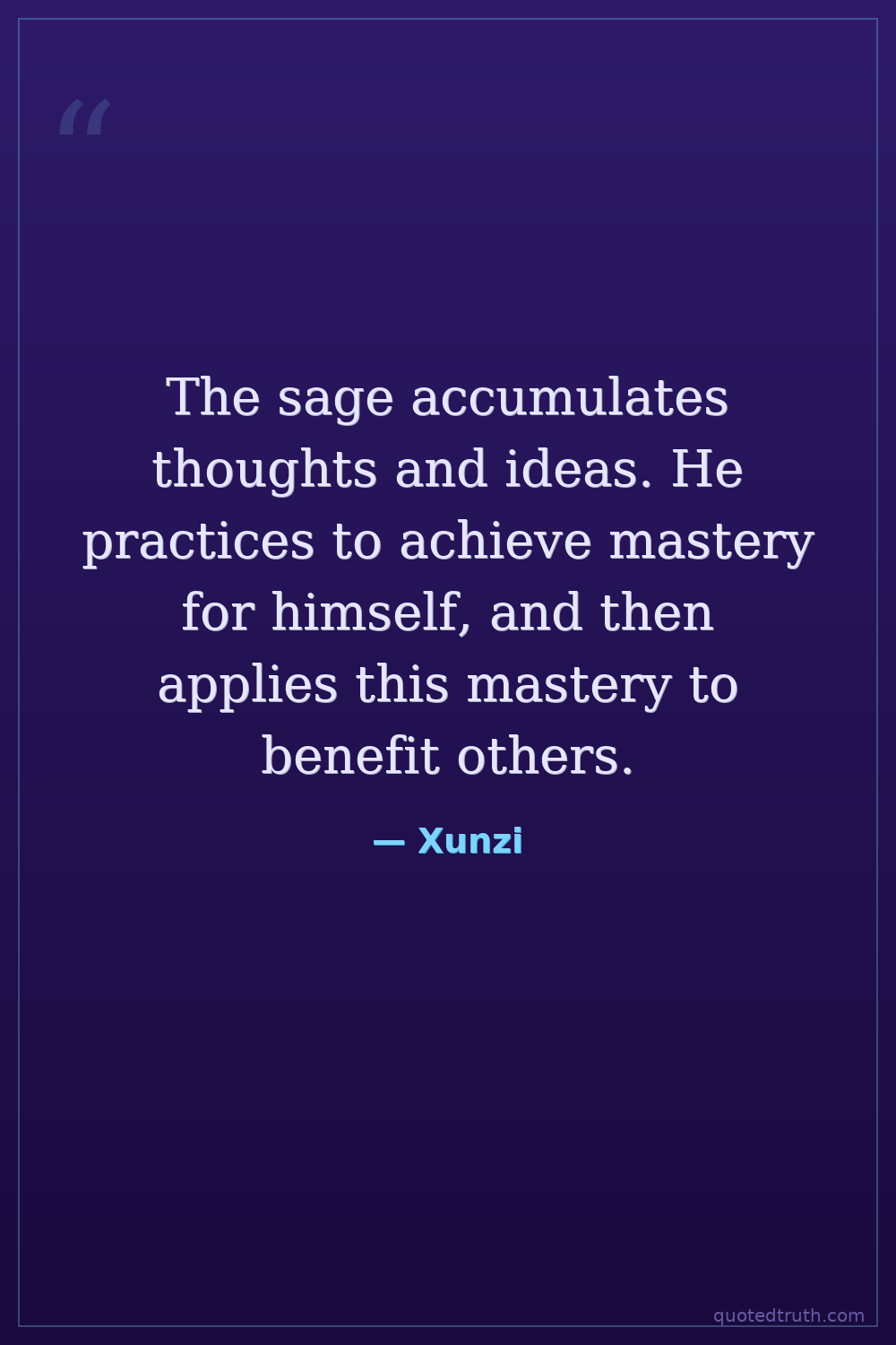 The sage accumulates thoughts and ideas. He practices to achieve mastery for himself, and then applies this mastery to benefit others.