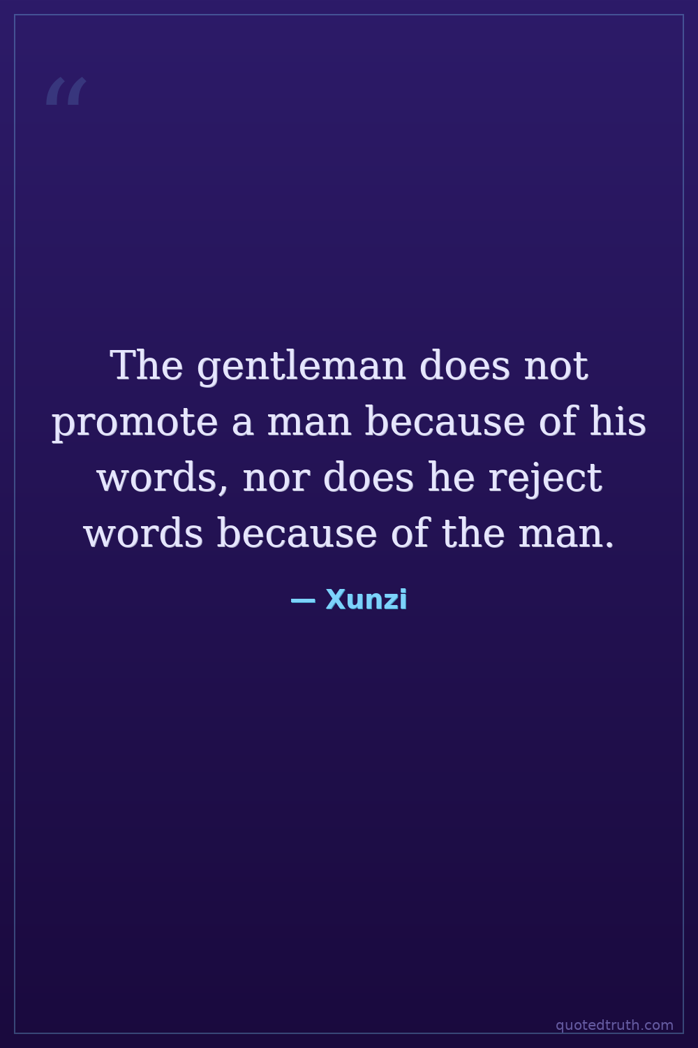 The gentleman does not promote a man because of his words, nor does he reject words because of the man.