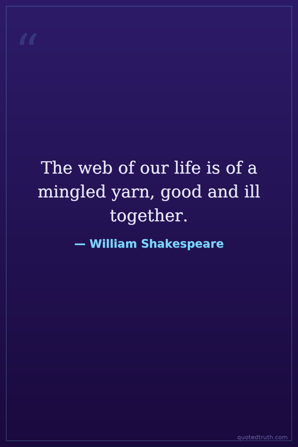 The web of our life is of a mingled yarn, good and ill together.