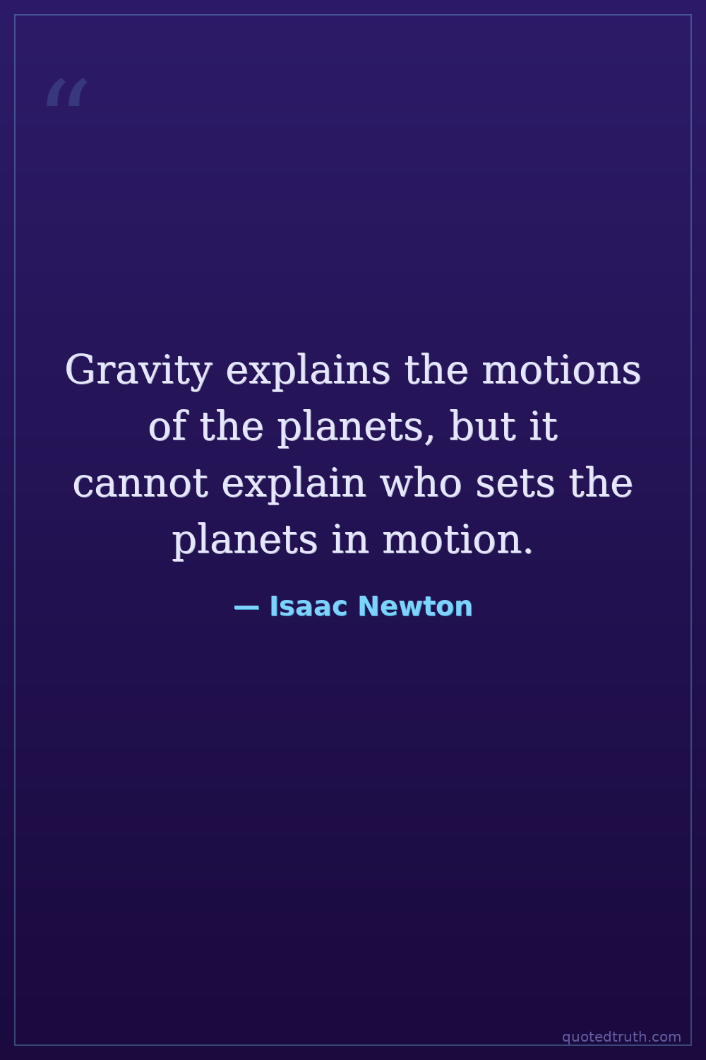 Gravity explains the motions of the planets, but it cannot explain who sets the planets in motion.