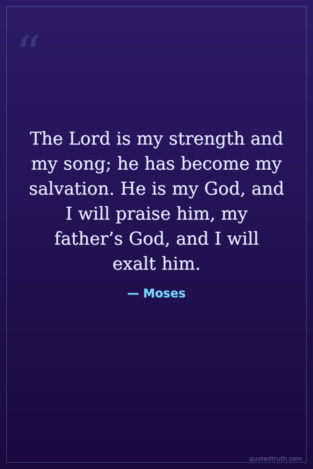 The Lord is my strength and my song; he has become my salvation. He is my God, and I will praise him, my father’s God, and I will exalt him.