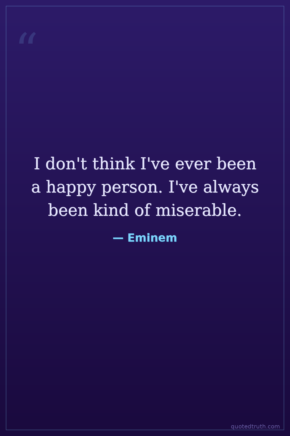 I don't think I've ever been a happy person. I've always been kind of miserable.