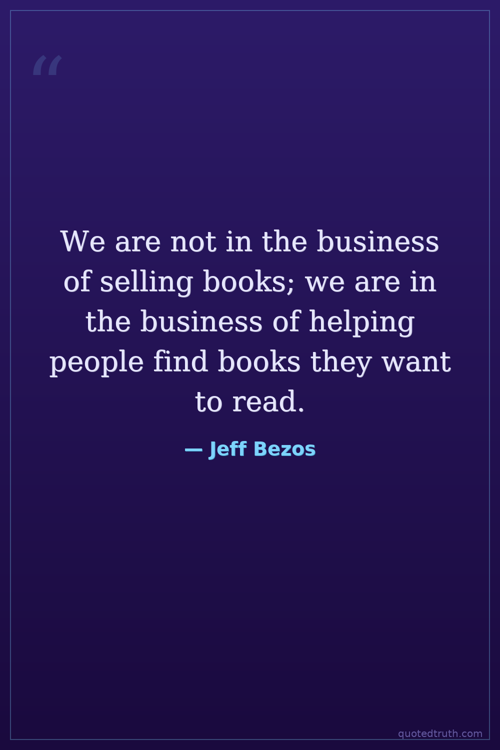 We are not in the business of selling books; we are in the business of helping people find books they want to read.
