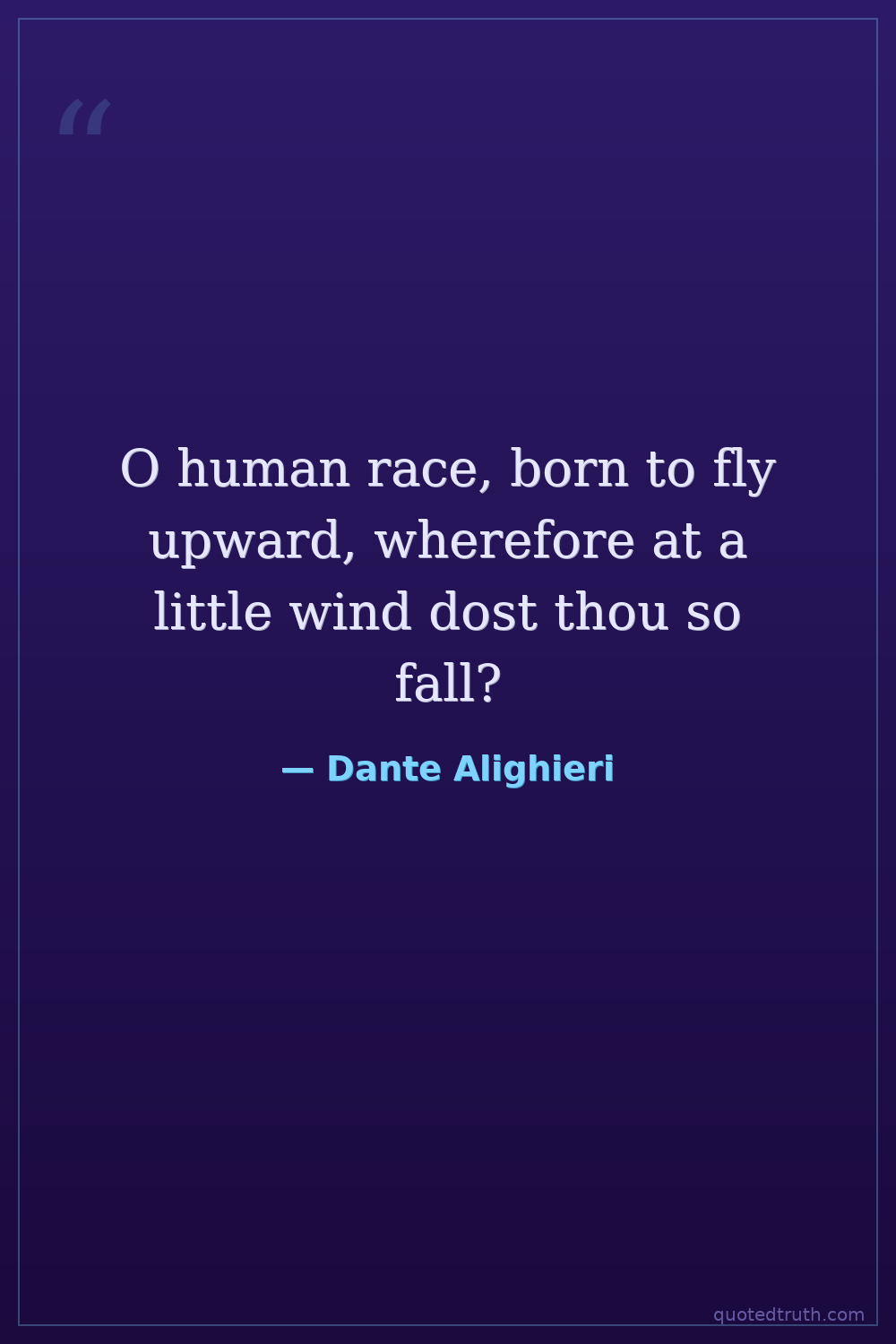 O human race, born to fly upward, wherefore at a little wind dost thou so fall?