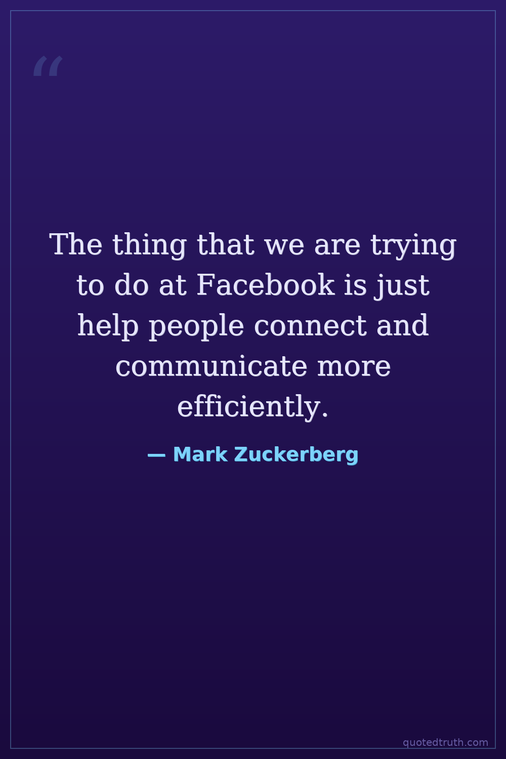 The thing that we are trying to do at Facebook is just help people connect and communicate more efficiently.