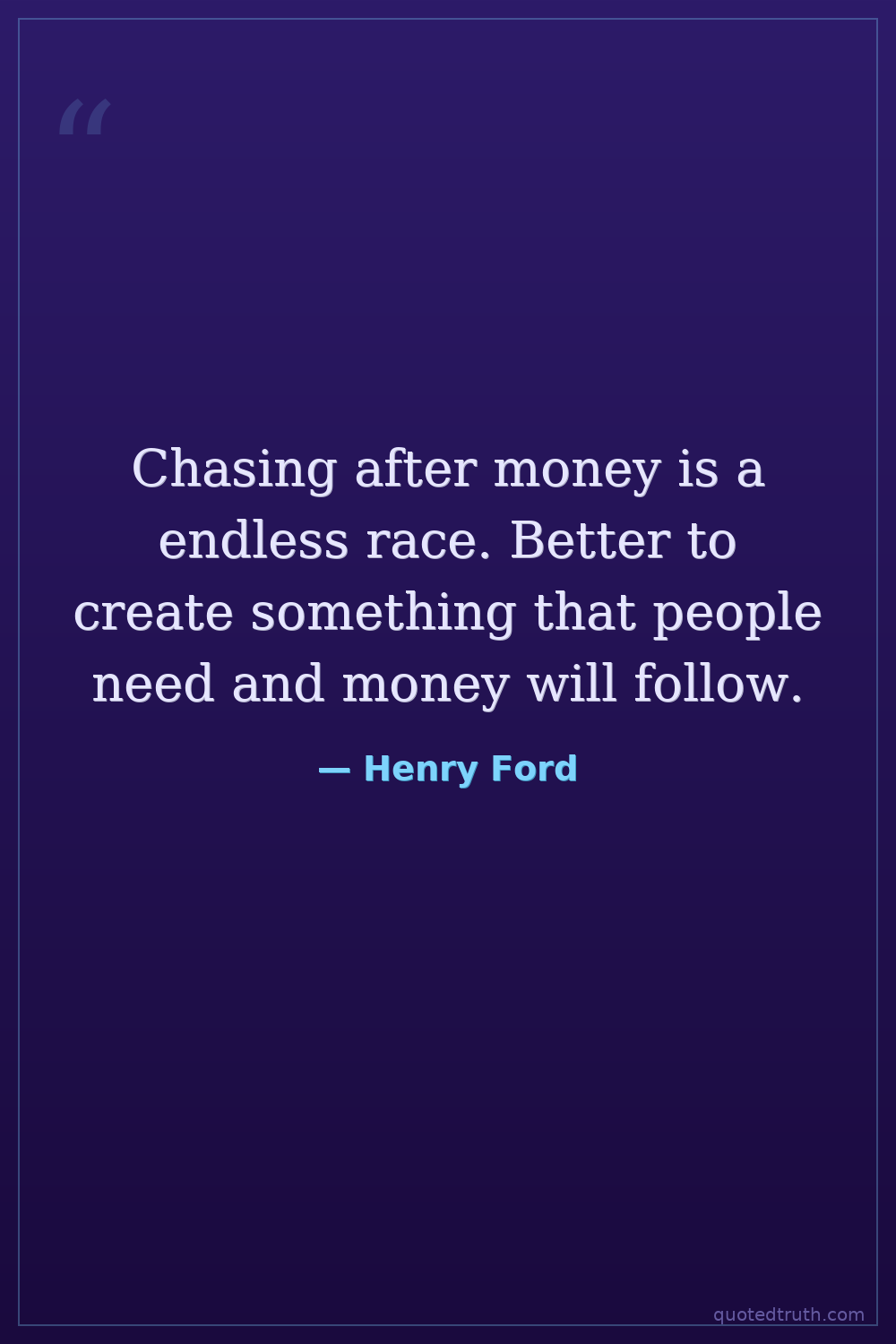 Chasing after money is a endless race. Better to create something that people need and money will follow.