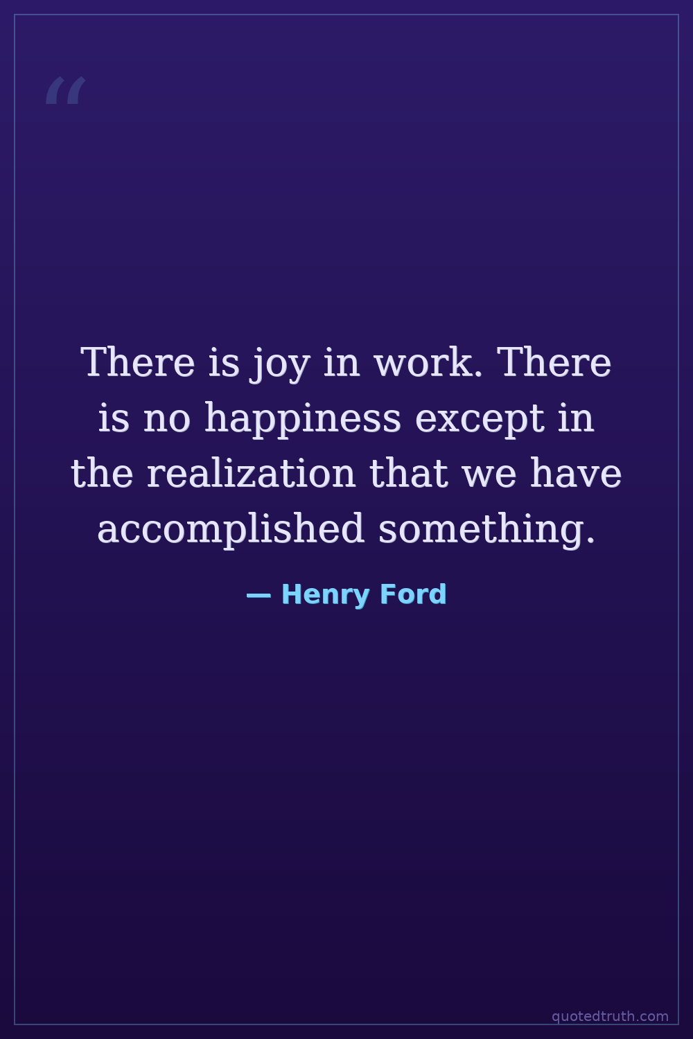 There is joy in work. There is no happiness except in the realization that we have accomplished something.