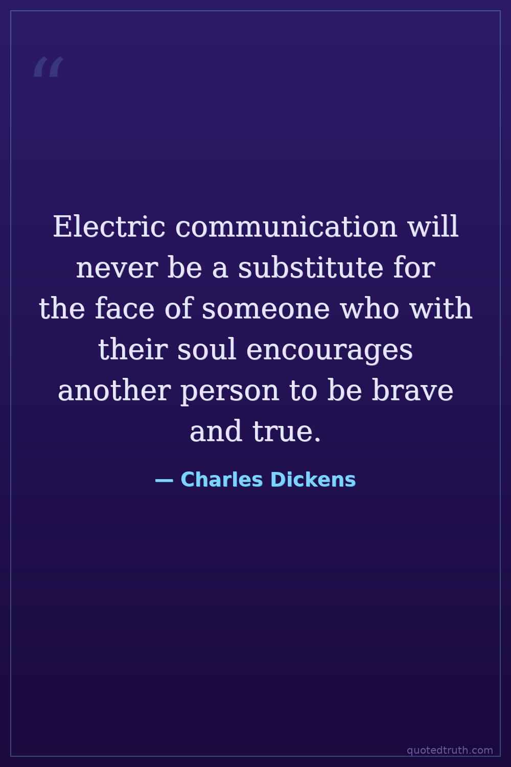 Electric communication will never be a substitute for the face of someone who with their soul encourages another person to be brave and true.