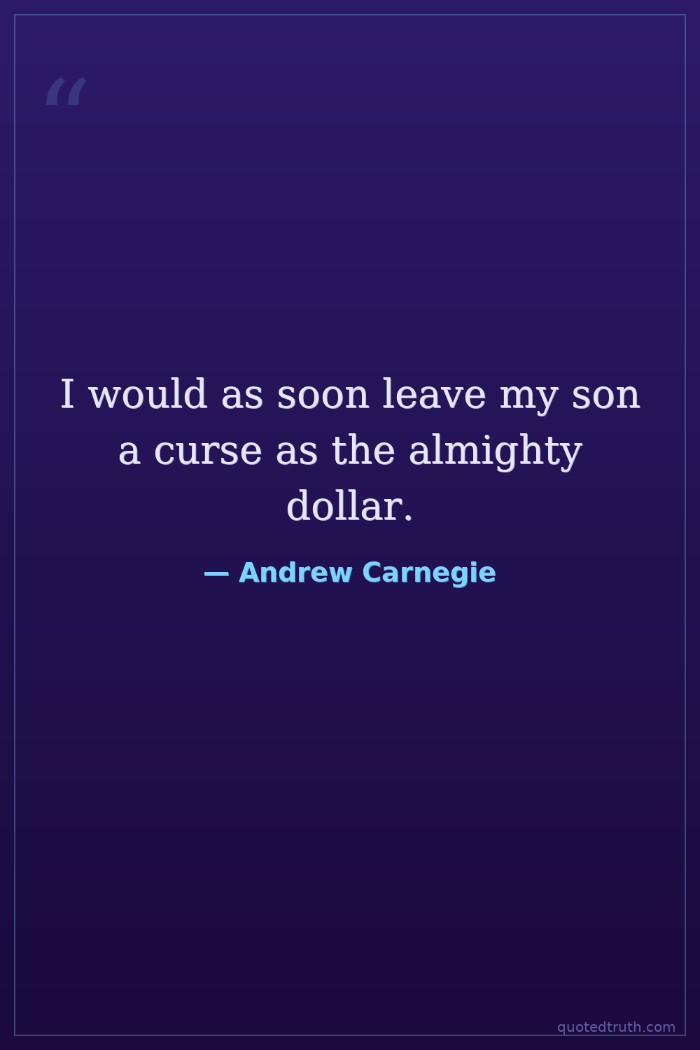 I would as soon leave my son a curse as the almighty dollar.