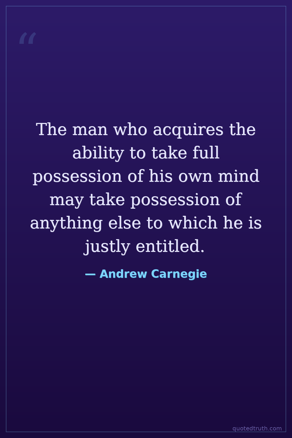 The man who acquires the ability to take full possession of his own mind may take possession of anything else to which he is justly entitled.