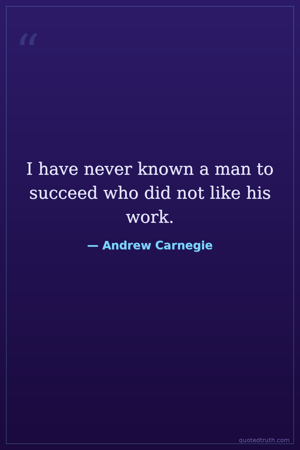I have never known a man to succeed who did not like his work.