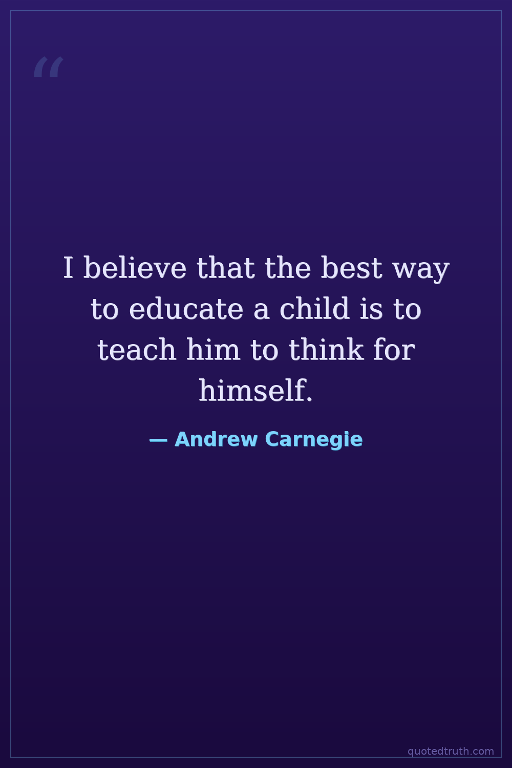 I believe that the best way to educate a child is to teach him to think for himself.