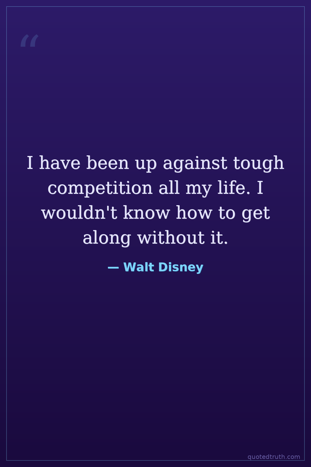 I have been up against tough competition all my life. I wouldn't know how to get along without it.