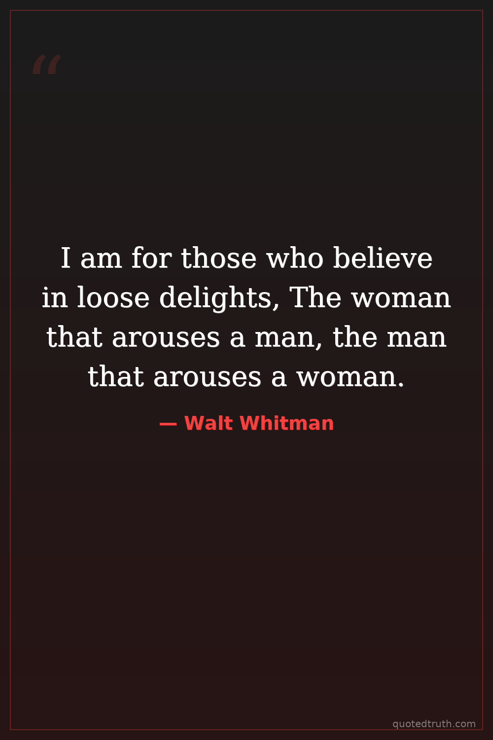 I am for those who believe in loose delights, The woman that arouses a man, the man that arouses a woman.