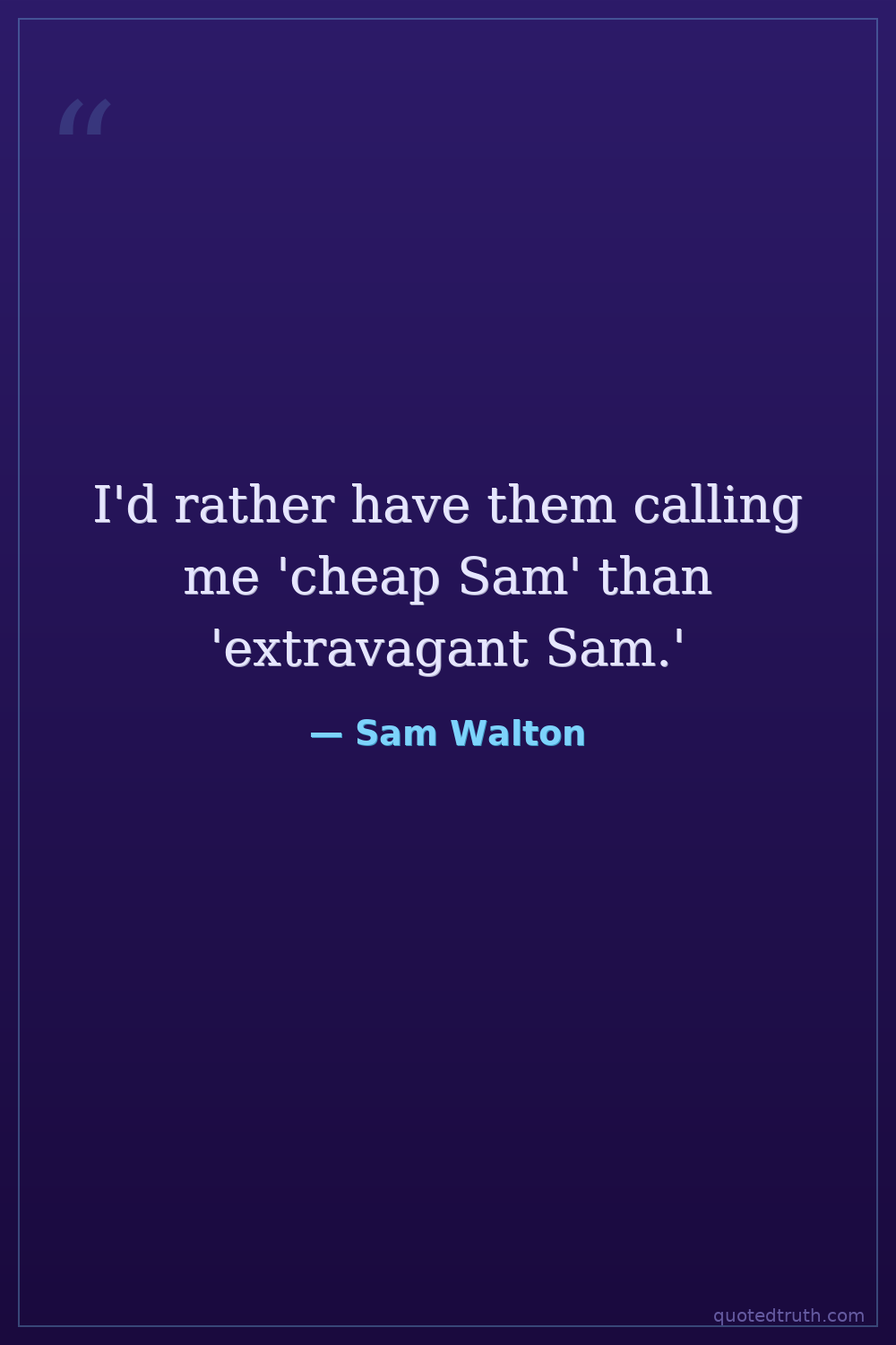 I'd rather have them calling me 'cheap Sam' than 'extravagant Sam.'