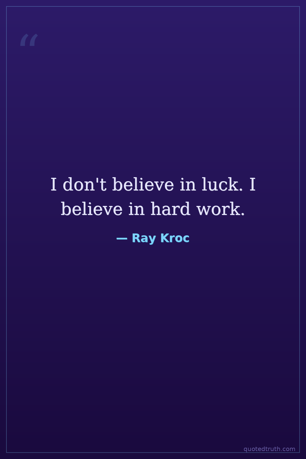 I don't believe in luck. I believe in hard work.