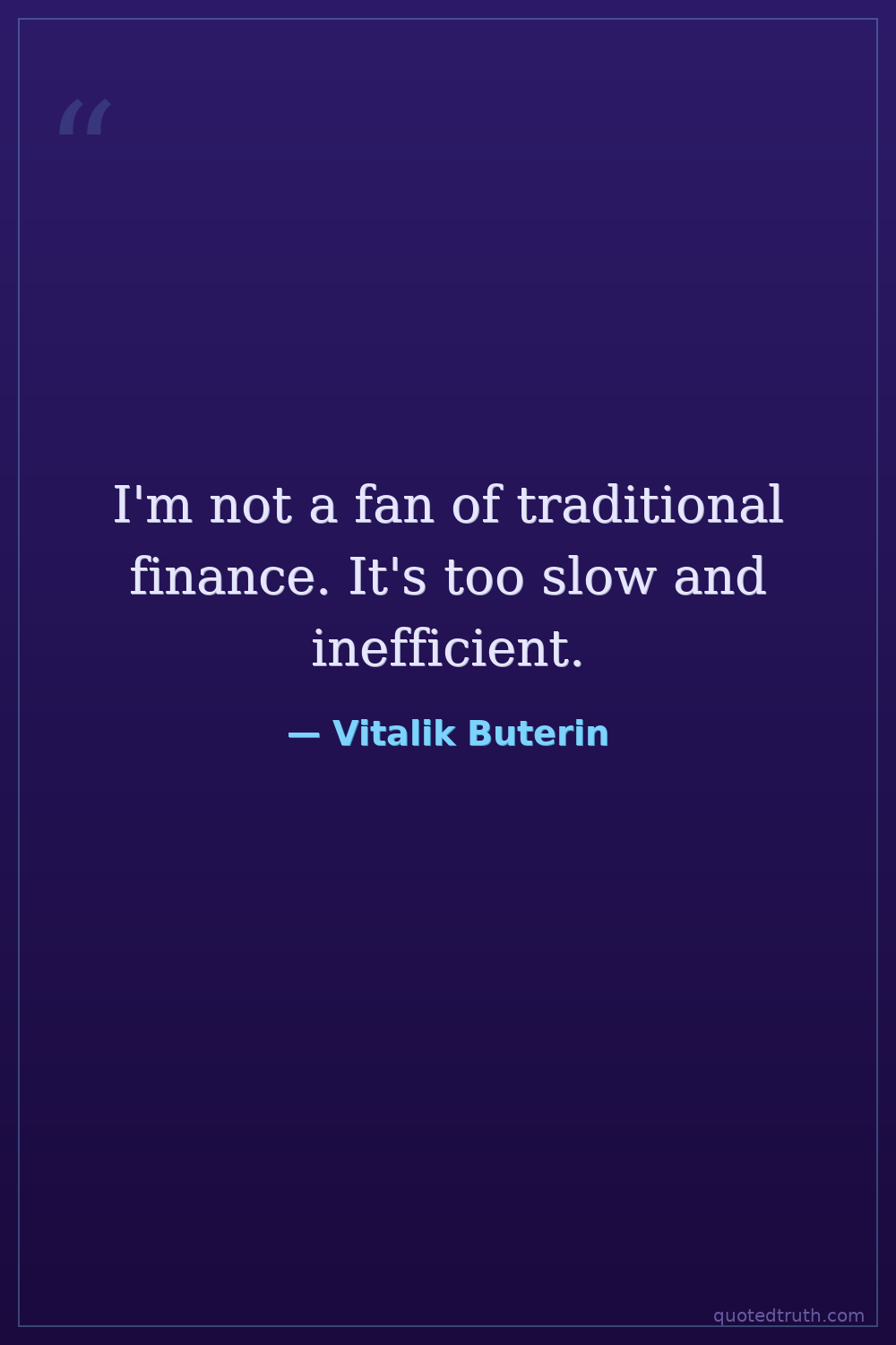 I'm not a fan of traditional finance. It's too slow and inefficient.