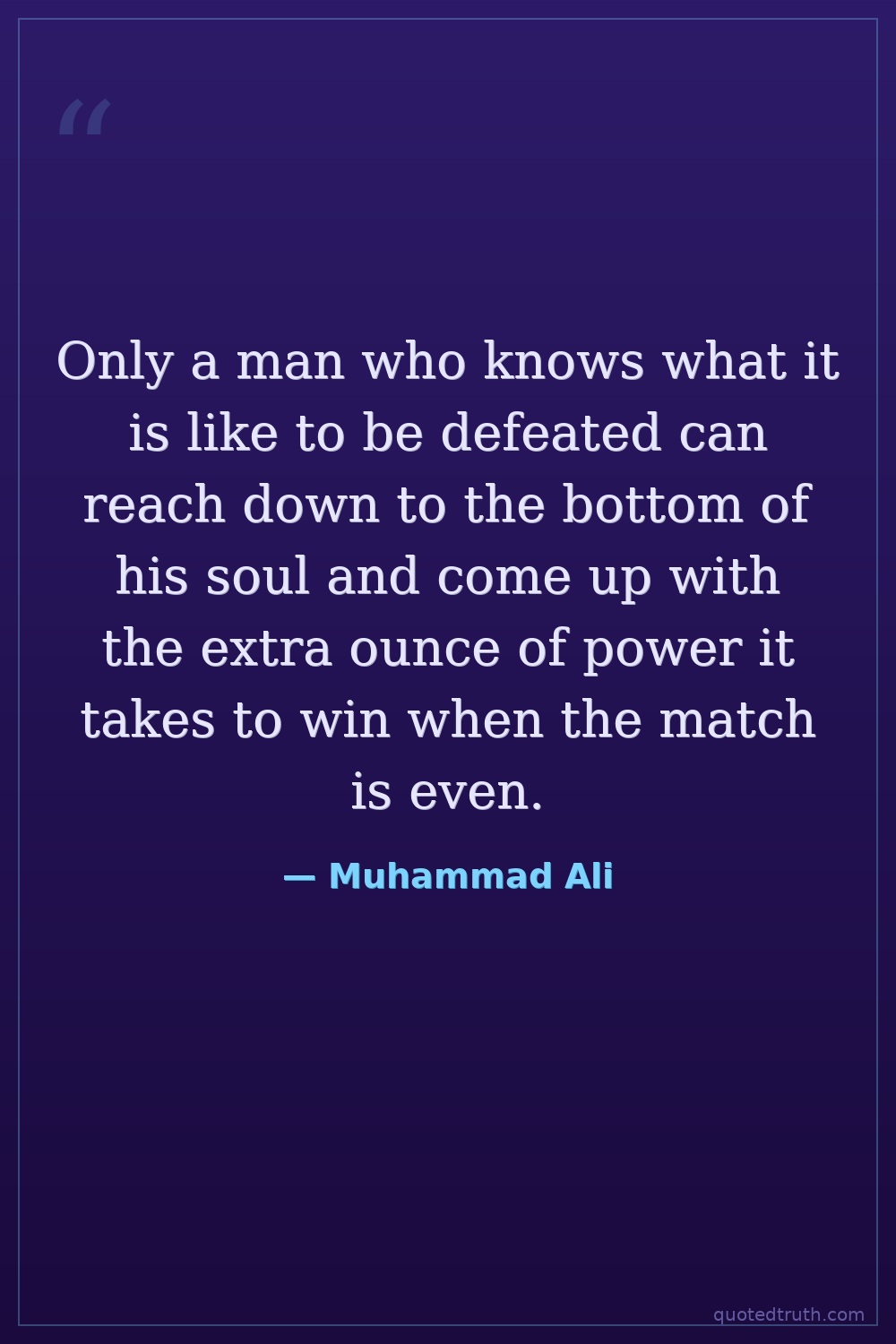 Only a man who knows what it is like to be defeated can reach down to the bottom of his soul and come up with the extra ounce of power it takes to win when the match is even.