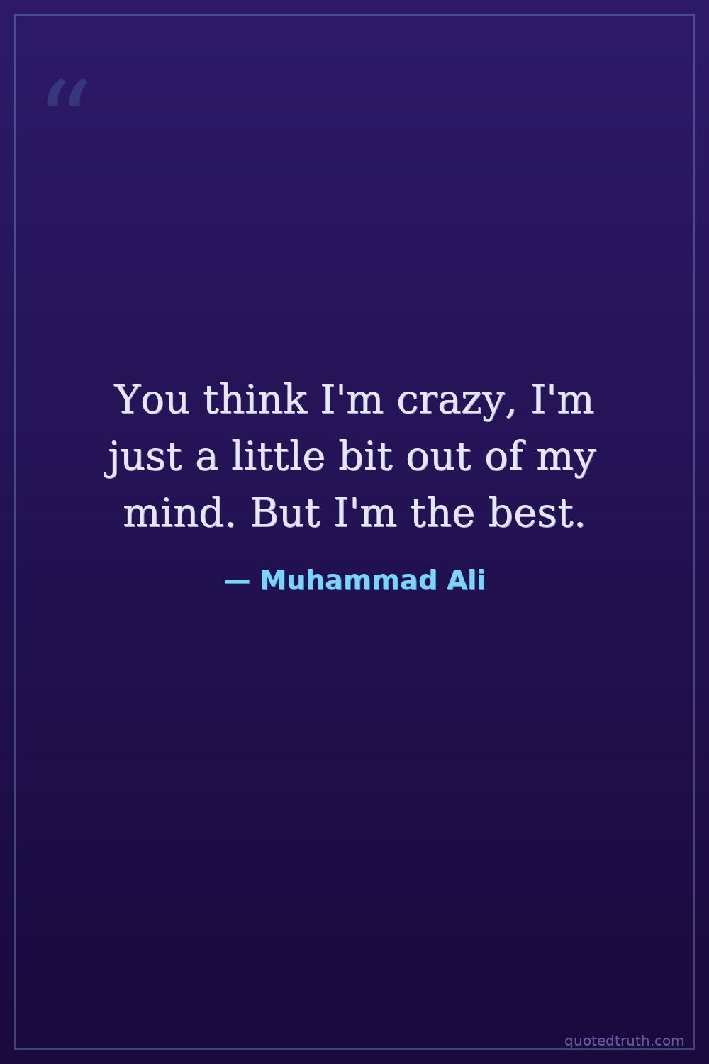 You think I'm crazy, I'm just a little bit out of my mind. But I'm the best.