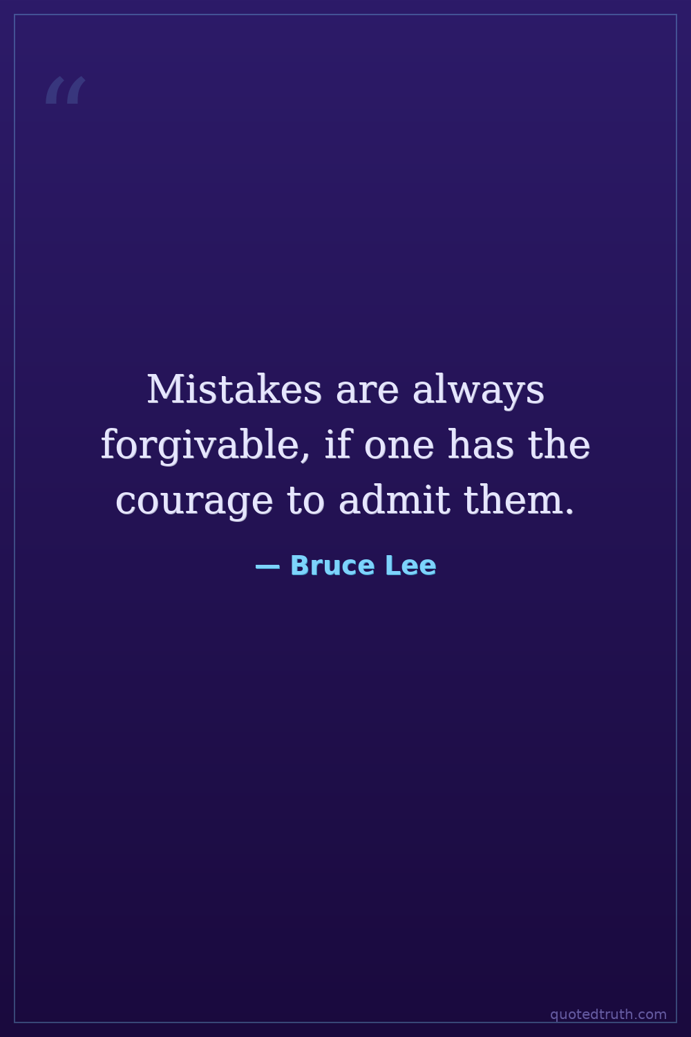 Mistakes are always forgivable, if one has the courage to admit them.