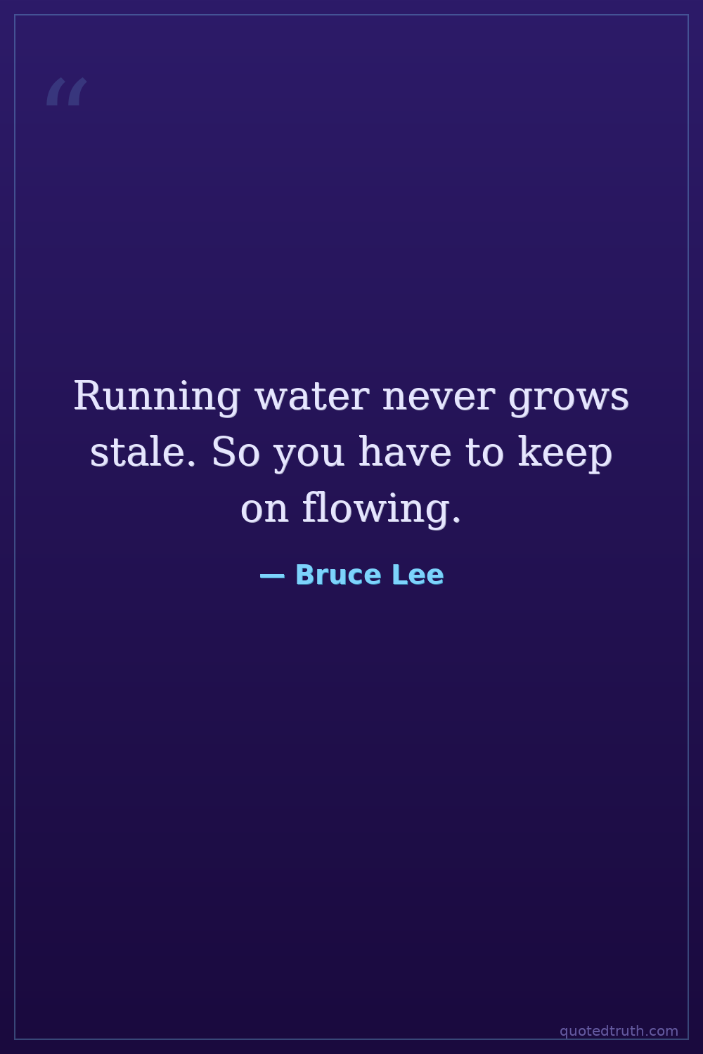 Running water never grows stale. So you have to keep on flowing.