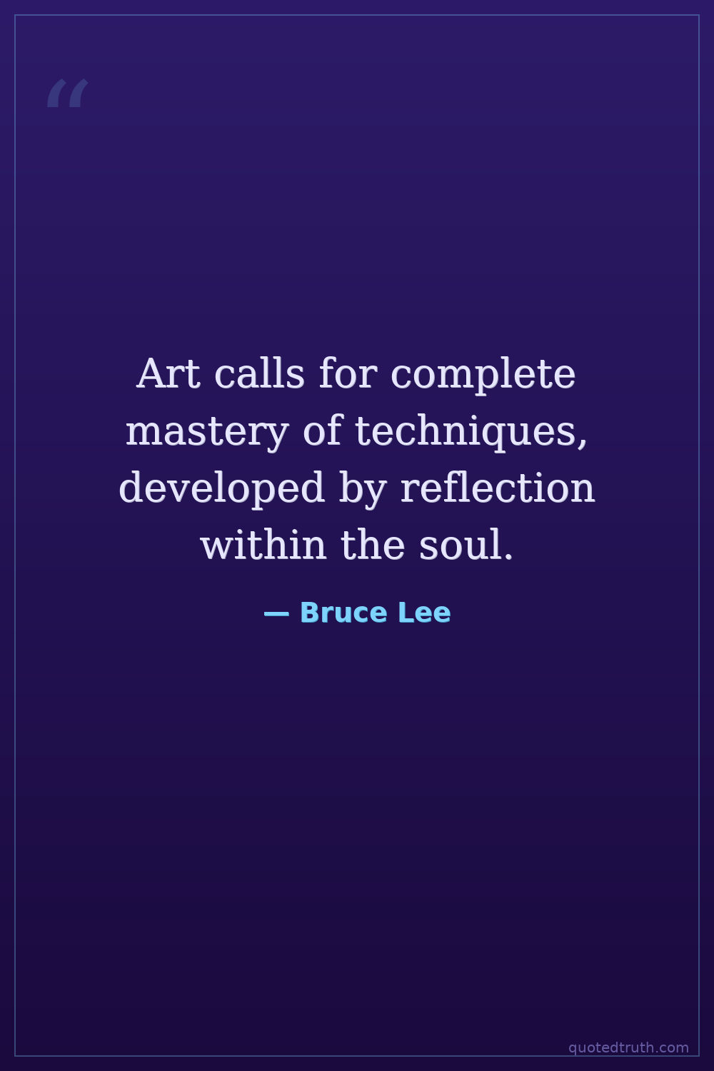 Art calls for complete mastery of techniques, developed by reflection within the soul.